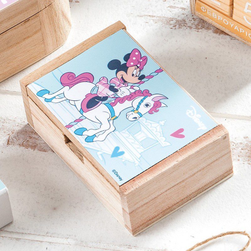 Disney ξύλινο natural κουτάκι, διακοσμημένο με αυτοκόλλητο print 1. Mickey mouse Little prince in his castle σε σιέλ αποχρώσεις ή 2. Minnie Tropical σε βεραμάν-κόκκινες αποχρώσεις ή 3. Minnie Carousel σε σιέλ-ροζ αποχρώσεις ή 4. Mickey mouse Smooth sailing σε αποχρώσεις του μπλε. Η συσκευασία έχει 12 τεμάχια. Ελάχιστος χρόνος παράδοσης 12-15 εργάσιμες ημέρες. Στην τιμή δεν περιλαμβάνεται ο στολισμός / δέσιμο.