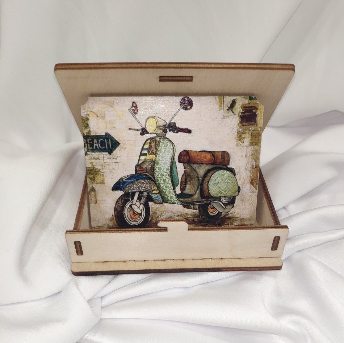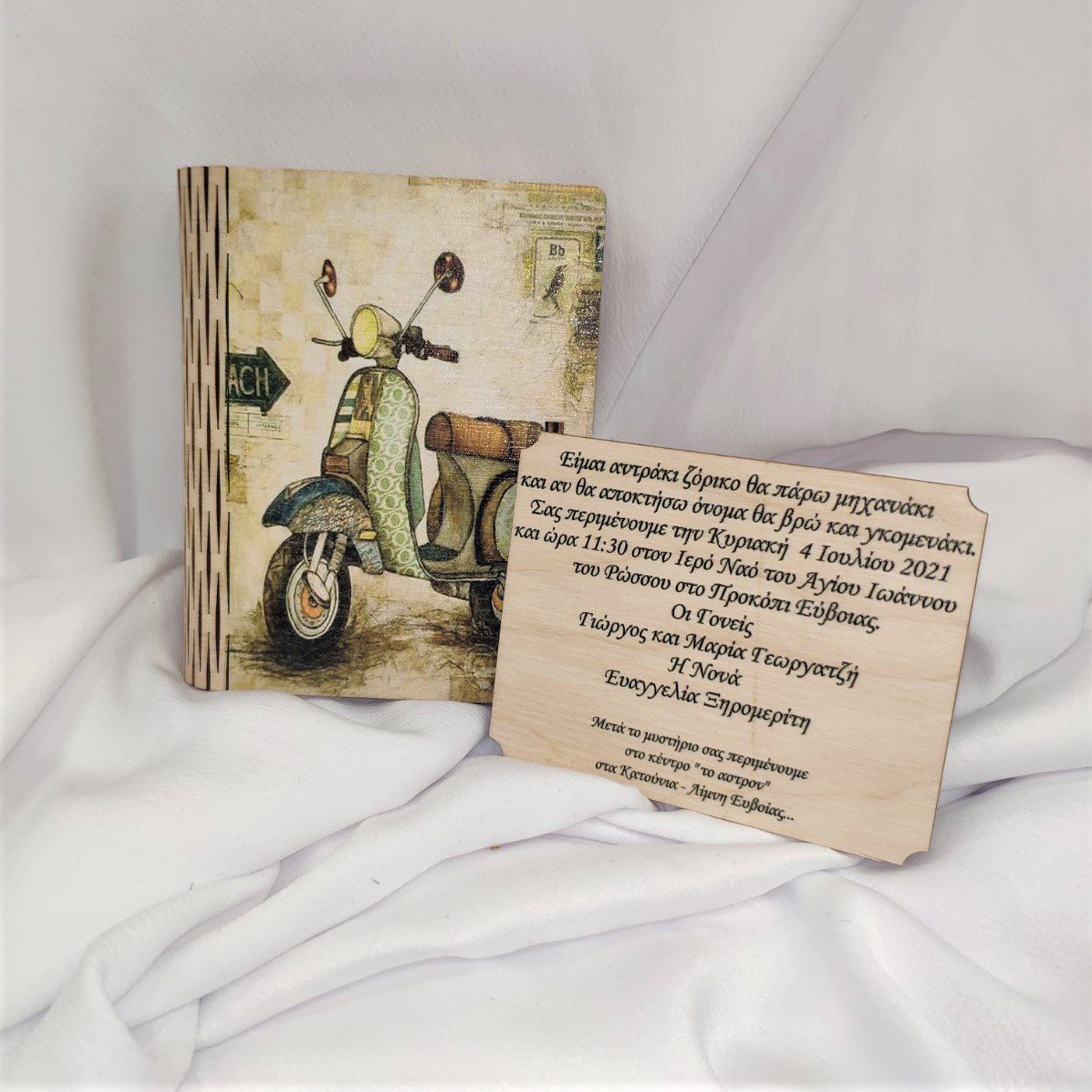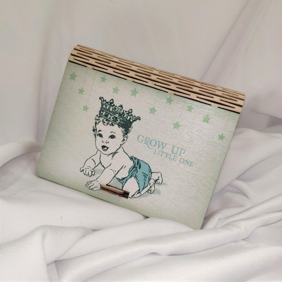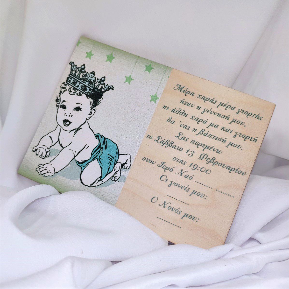Μπομπονιέρα βάπτισης ξύλινο κουτάκι με ξύλινο προσκλητήριο καδράκι. Παραδίδεται έτοιμη δεμένη με κουφέτα και προσκλητήριο. Διαστάσεις κουτιού ύψος 11,5εκ. πλάτος 9 εκ. Καδράκι ύψος 12εκ. πλάτος 16εκ, σε σημύδα 5χιλ. Ελάχιστη παραγγελία 20 τεμάχια. Χρόνος παράδοσης έως 20 εργάσιμες