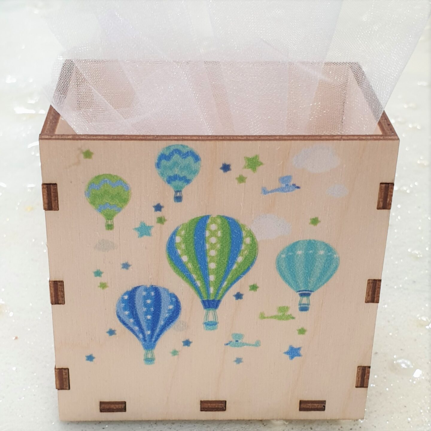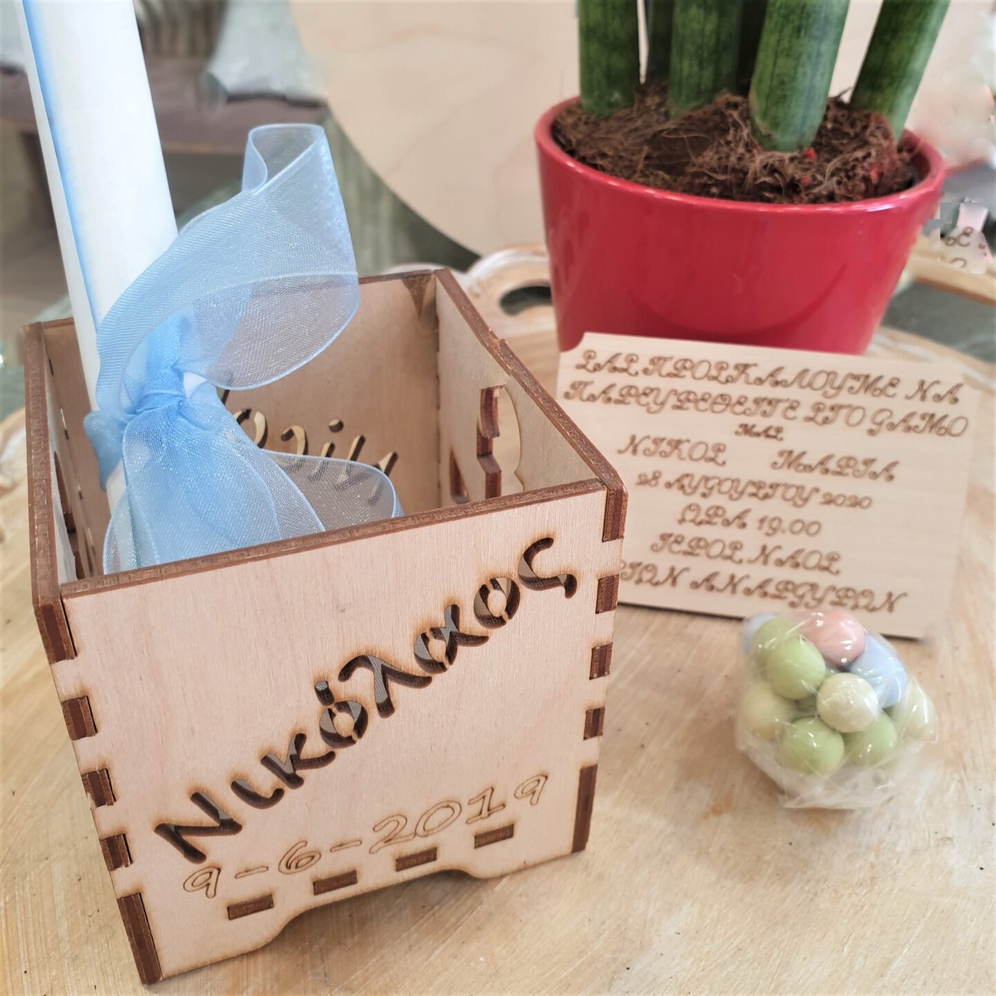 Μπομπονιέρα ξύλινο κουτάκι για χαρτάκια με το θέμα της βάπτισης σας