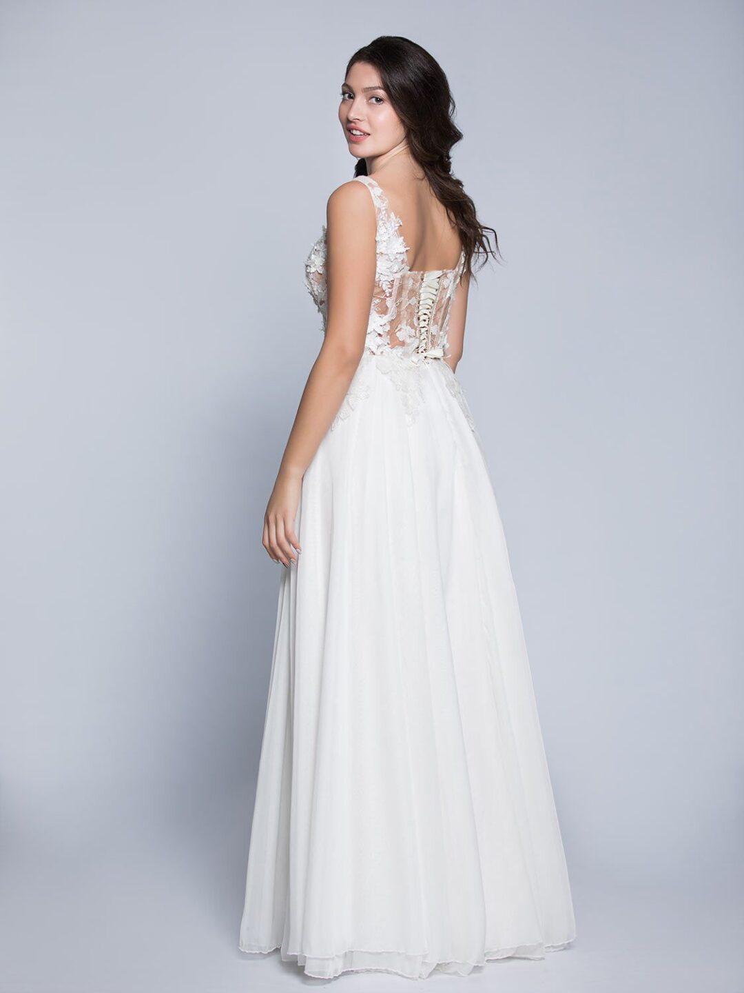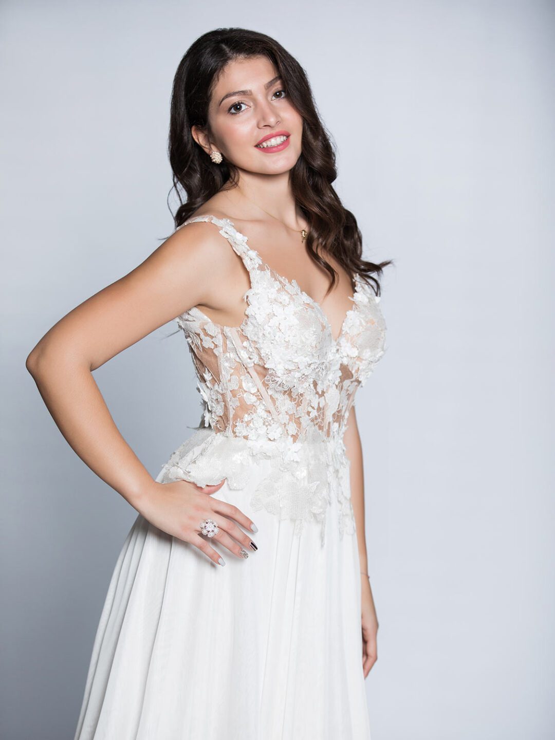 Νυφικό ολομέταξο με δαντέλα σε άλφα γραμμή. Το μπούστο είναι ολοκέντητο από 3D δαντέλα και παγιέτα, πλάτη με χιαστή δέσιμο σε off white χρώμα. Καλύπτει νούμερα M/L. Ένα ονειρεμένο ρομαντικό νυφικό για τη πιο σημαντική στιγμή της ζωής σου! Το νυφικό είναι μοναδικό και είναι μόνο προς πώληση, ώστε να είσαι σίγουρη ότι θα είναι μοναδικά ξεχωριστό όπως σου αρμόζει. Πολλές νύφες μας μας έχουν εμπιστευτεί και έχουν αγοράσει με τις συμβουλές μας το νυφικό τους online. Αν δεν είσαι σίγουρη για την εφαργαγή του μπορείς να κλείσεις ραντεβού για πρόβα στο info@missvanity.gr για να επισκεφτείς το φυσικό μας κατάστημα και κέρδισε 10% έκπτωση.