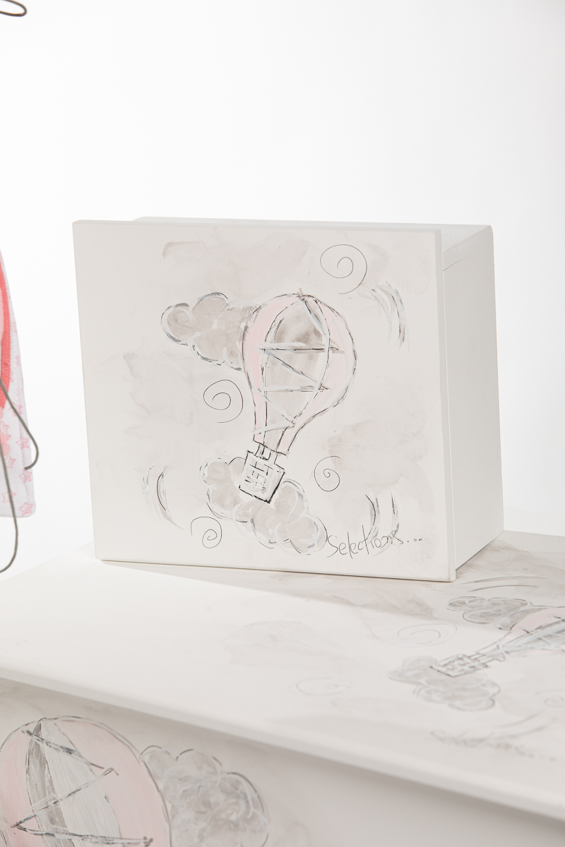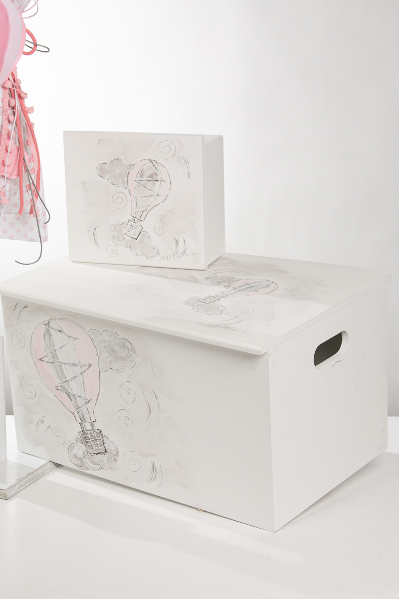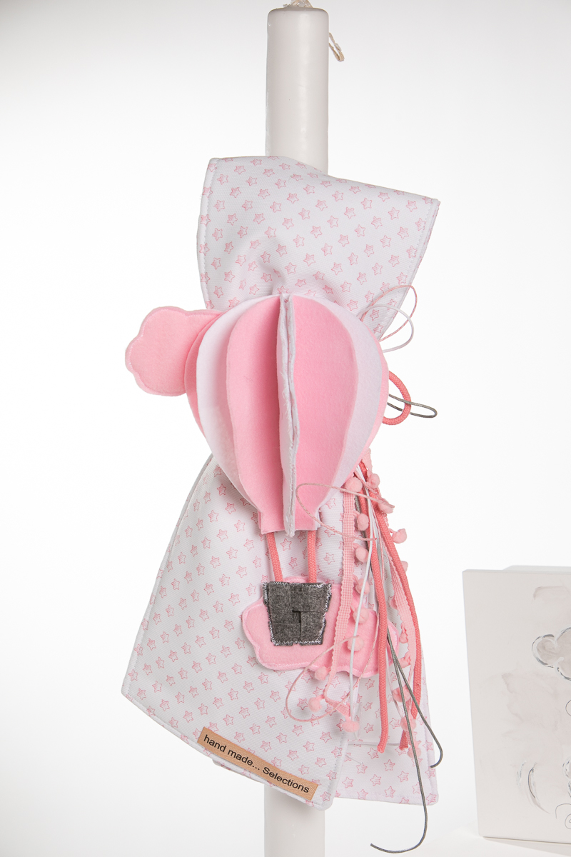 Ολοκληρωμένο πακέτο βάπτισης με θέμα αερόστατο. Το πακέτο περιλαμβάνει ξύλινο μπαούλο, λαδόπανα, 3 κεράκια κολυμπήθρας, σαπουνάκι, μπουκαλάκι λαδιού και 50 μαρτυρικά