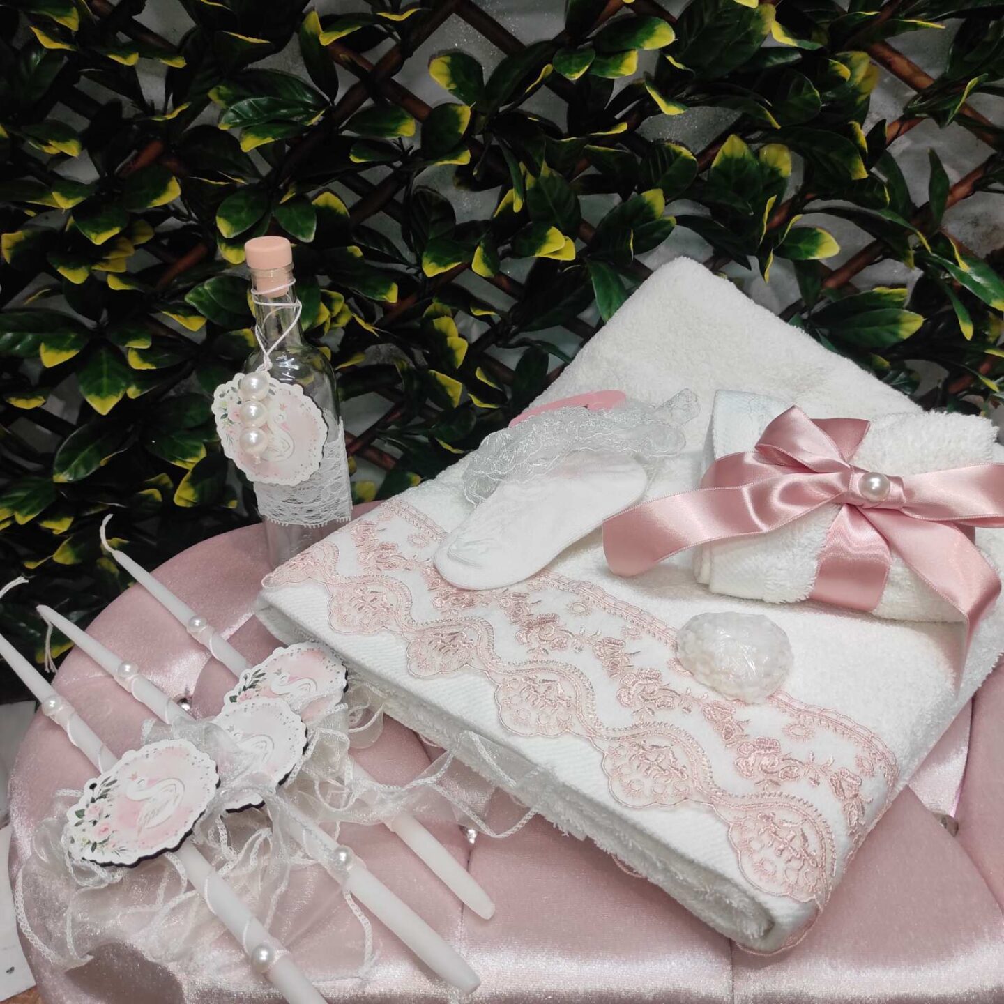 Ολοκληρωμένο πακέτο βάπτισης για κορίτσι με θέμα κύκνος. Το πακέτο περιλαμβάνει τροχήλατη βαλίτσα, λαδόπανα, 3 κεράκια κολυμπήθρας, σαπουνάκι, μπουκαλάκι λαδιού και 50 μαρτυρικά.
