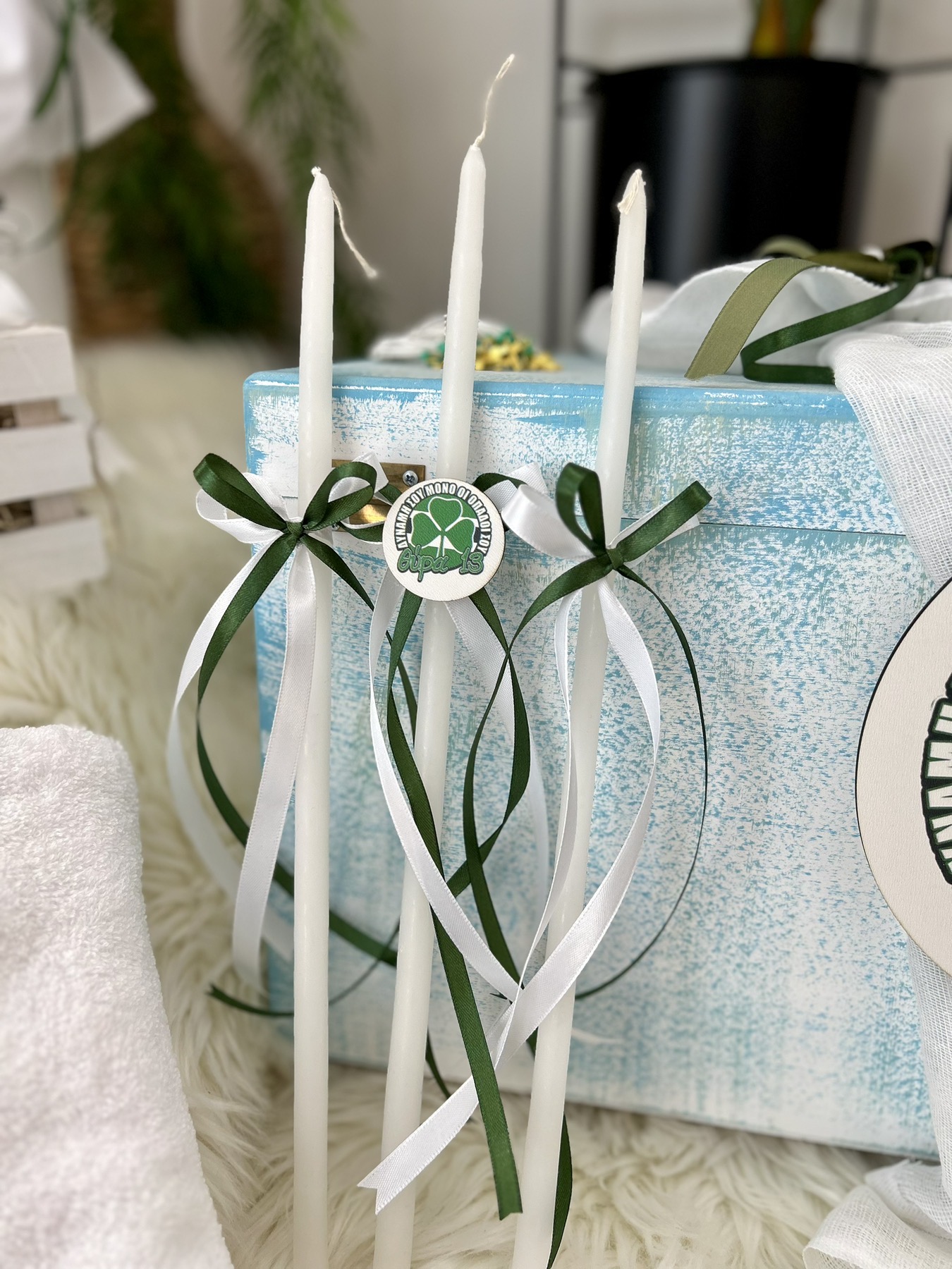 Στην τιμή συμπεριλαμβάνεται ο στολισμός της λαμπάδας (και η λαμπάδα) και του ξύλινου μπαούλου.