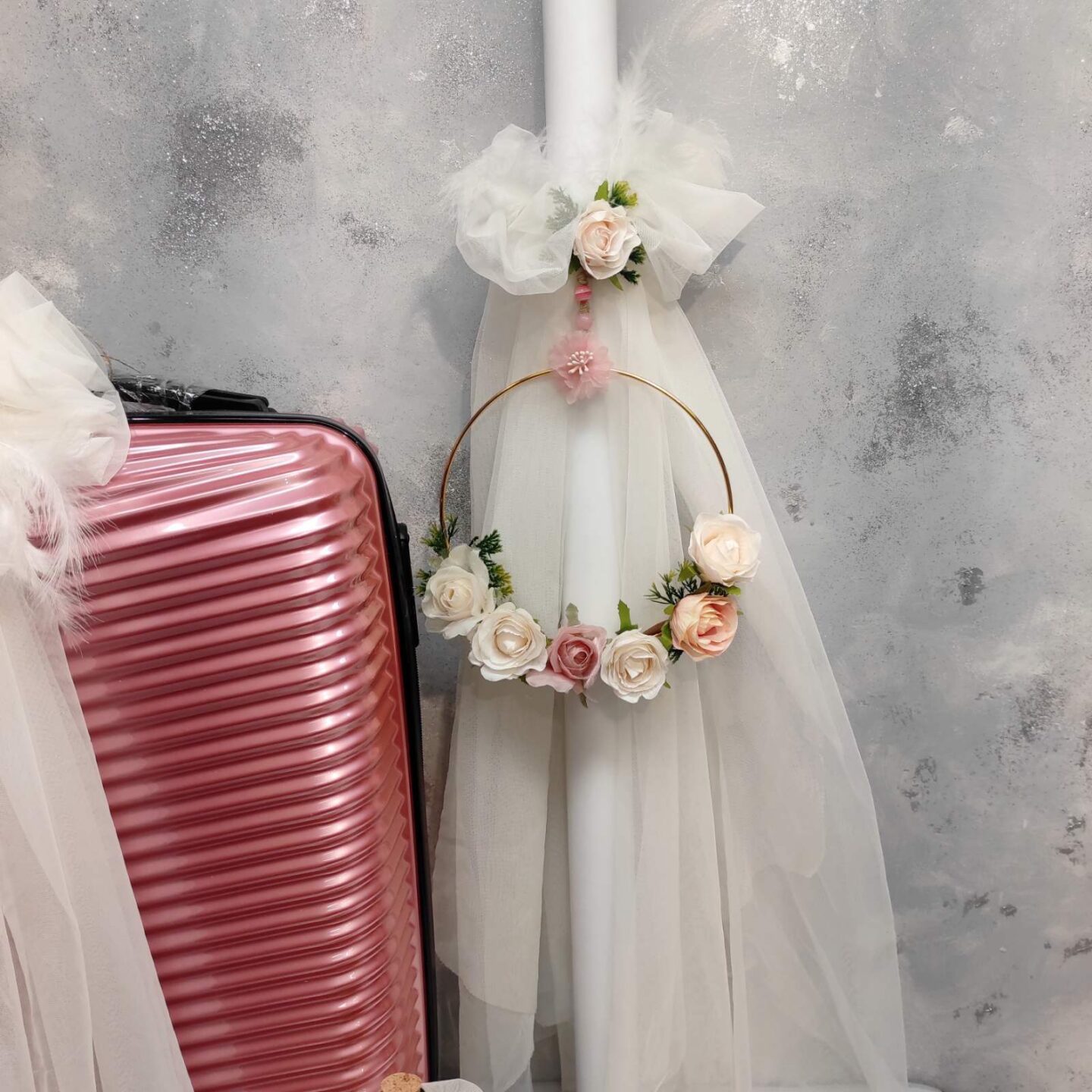 Επίσης στην τιμή συμπεριλαμβάνεται ο στολισμός της λαμπάδας(δεν συμπεριλαμβάνεται το κερί) και της βαλίτσας