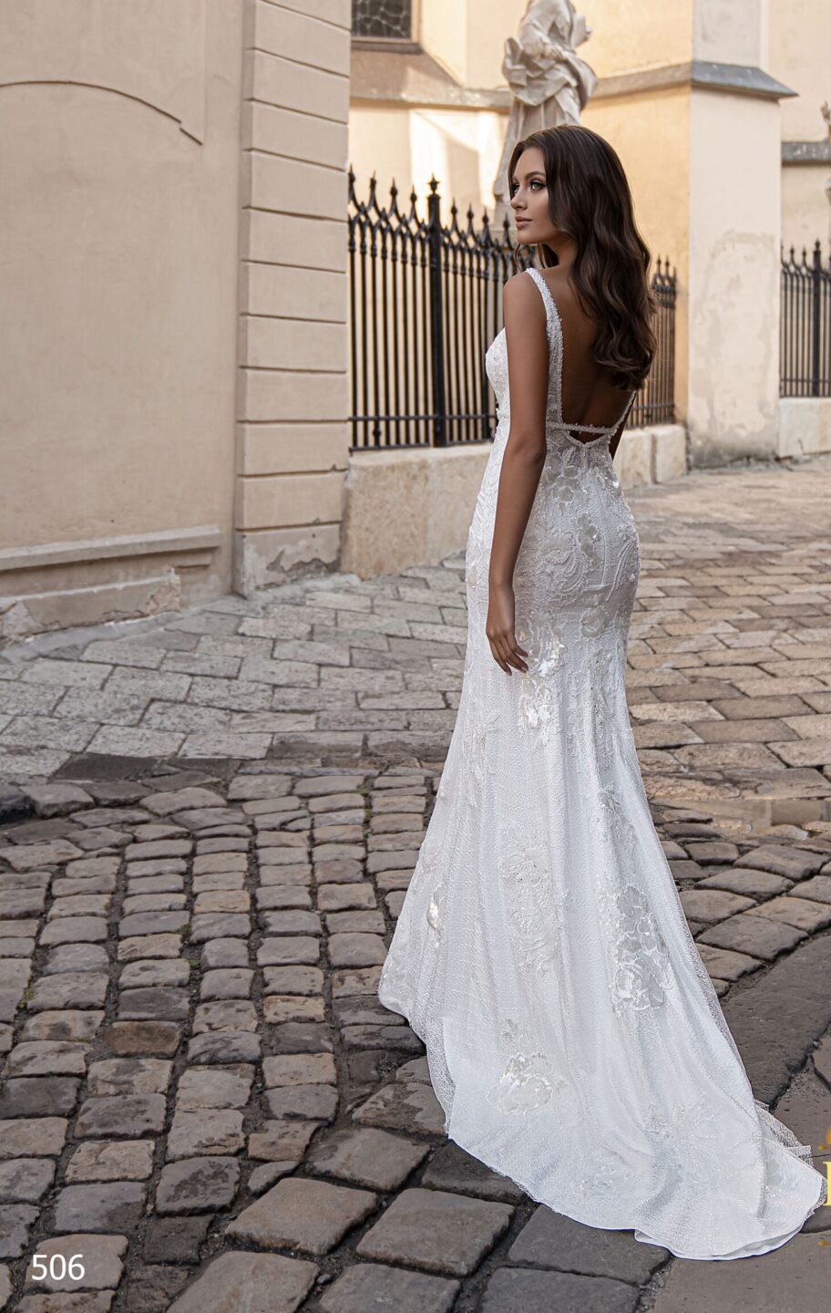 Ρομαντικό νυφικό με δαντέλα. Το νυφικό είναι όλο από δαντέλα και εσωτερική φόδρα από μέσαΔιαθέτει διακριτική ουρά και στην πλάτη έχει χαμηλό βαθύ άνοιγμα. Ιδανικό για πολιτικό και θρησκευτικό γάμο. Κανονική εφαρμογή