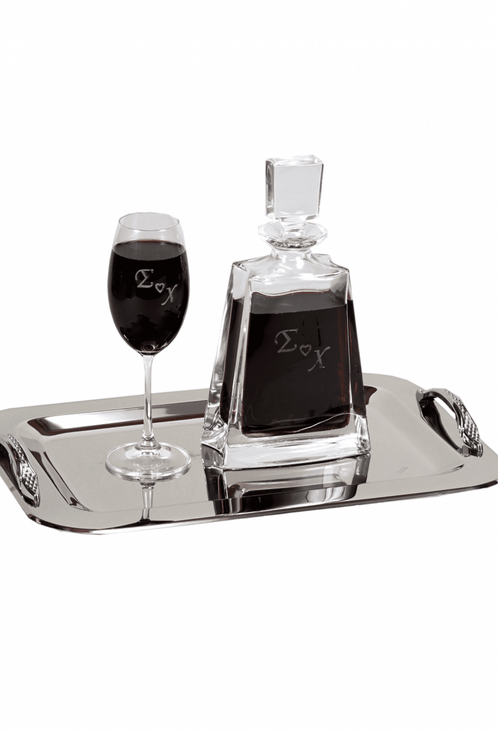 Σετ κουμπάρου από κρύσταλλο Βοημίας με ασημί στολισμό. Το σετ περιλαμβάνει περίτεχνο δίσκο, ιδιαίτερη μποτίλια κρασιού και ένα ποτήρι από κρύσταλλο Βοημίας. Όλα είναι χειροποίητα και κατασκευασμένα στην Ελλάδα.
