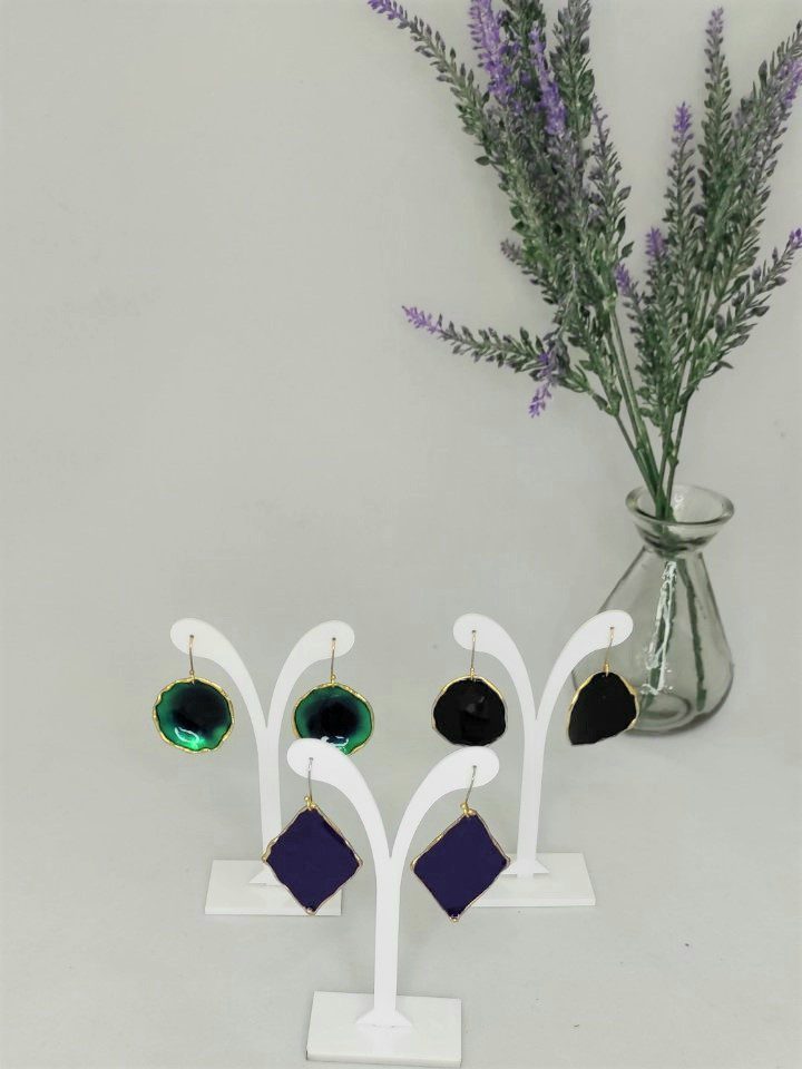 Κρεμαστά σκουλαρίκια από ορείχαλκο και γυαλί σε υπέροχα χρώματα. Χειροποίητη δημιουργία
