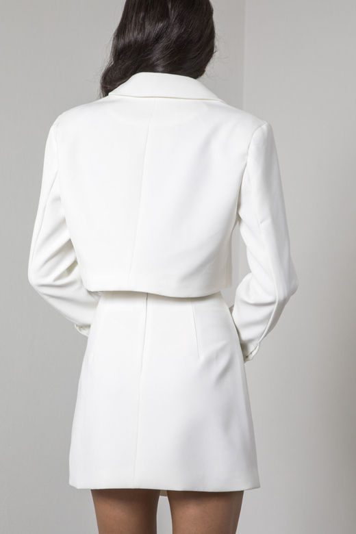 Φούστα mini με κουμπιά σε λευκό . Διαθέτει διακοσμητικά κουμπια και έχει στενή εφαρμογή. Ελληνικής ραφής