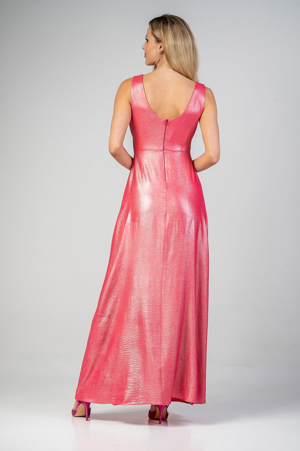 Maxi μεταλιζέ φόρεμα σε φούξια