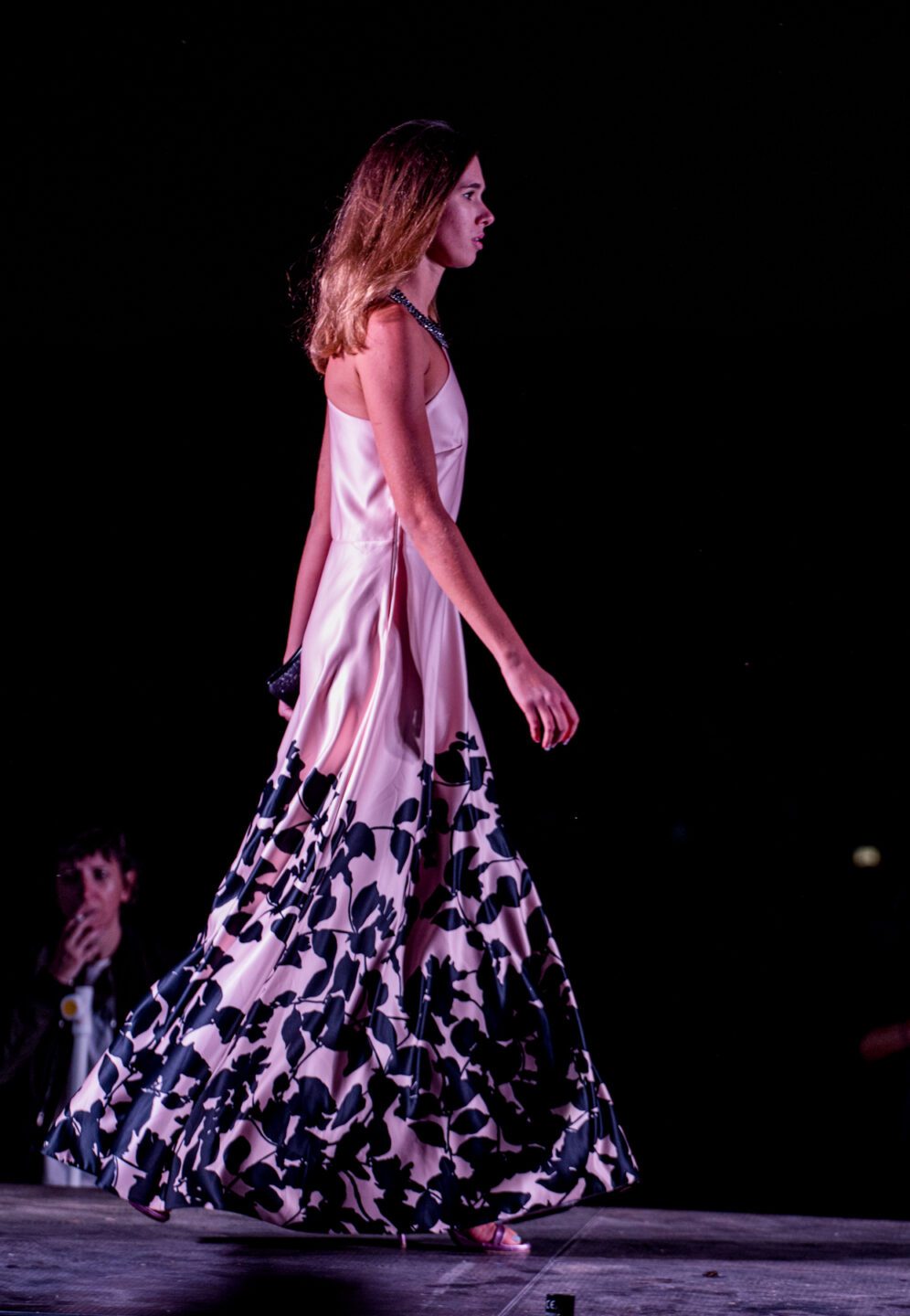 Maxi φόρεμα σατέν με floral τελείωμα, με έναν ώμο με φιόγκο και τσέπες. Ελληνικής ραφής