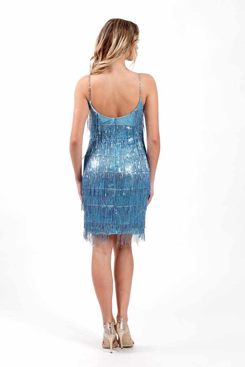 Midi φόρεμα με κρόσια και τιραντάκι. Διαθέτει λεπτή τιράντα και είναι γεμάτο κρόσια