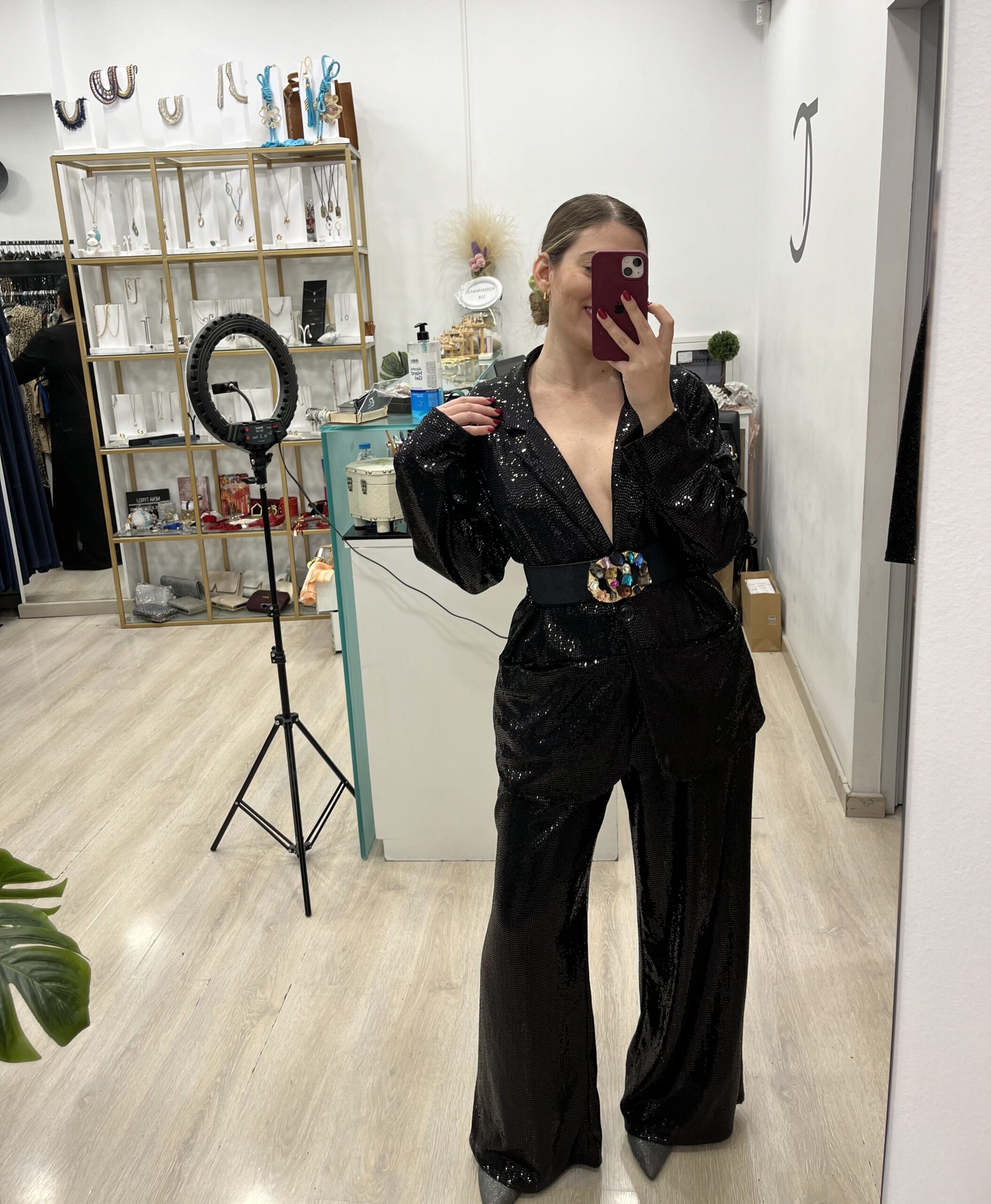 Oversized κουστούμι με παγιετα. Διαθέτει παντελόνι και σακάκι με δίκη του ενσωματωμένη ζώνη. Είναι one size αλλά καλύπτει μέχρι 2xl.